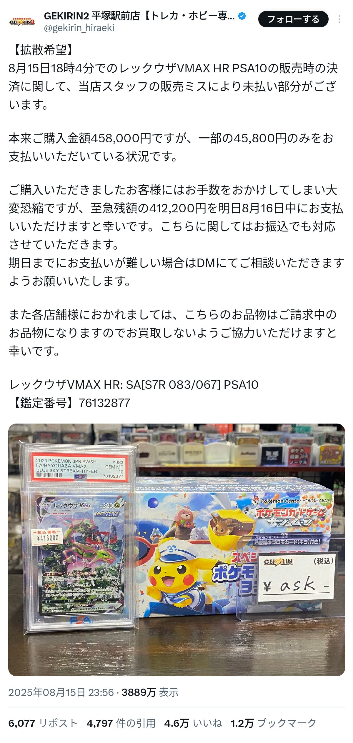 — カードショップ トレカチェイス@池袋 買取 (@chase_toreca1) April 19, 2026