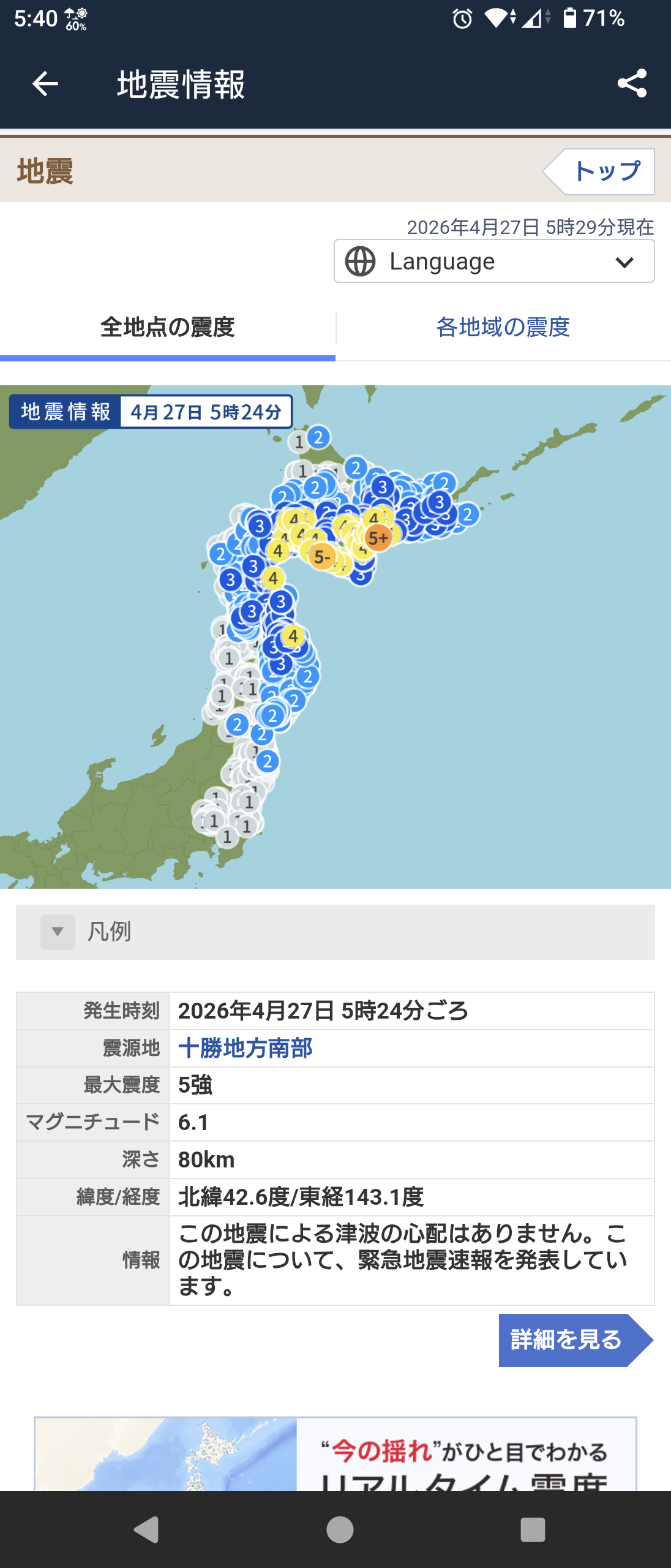 ちな、旅行で札幌来てて地震速報で目が覚めたが全然揺れてない