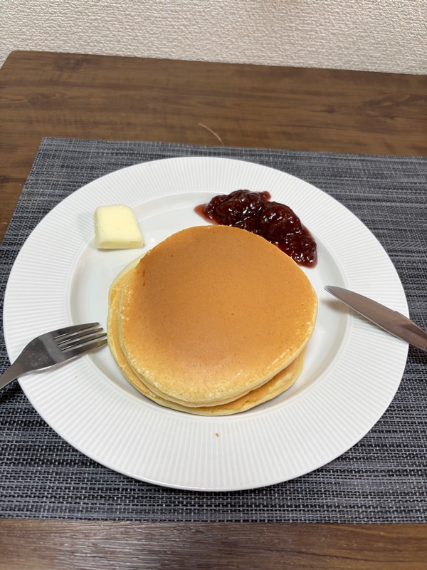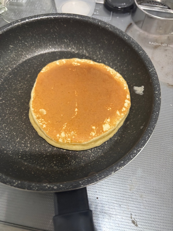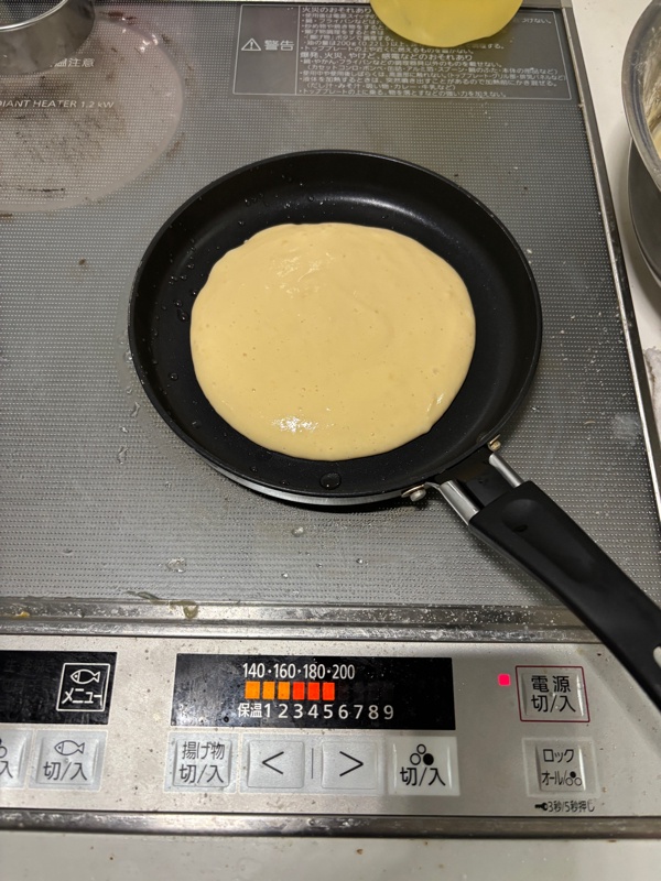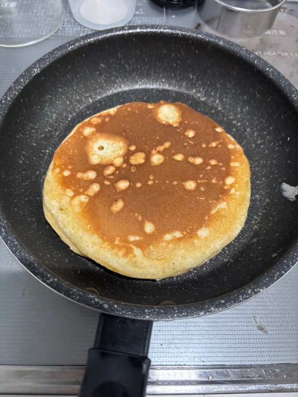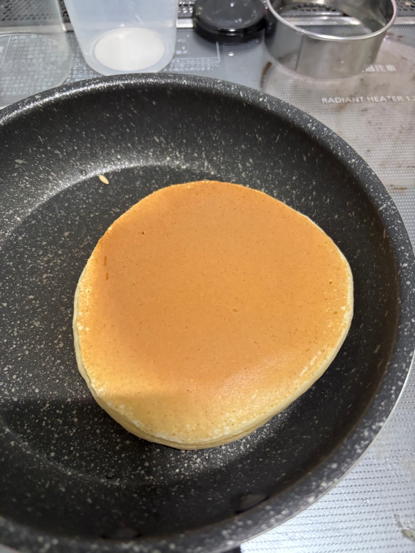 パンケーキって卵いっこ使う量の粉だとハイカロリーになるからだから卵を一個使う量で少なめの粉を使って作ってるんだけど