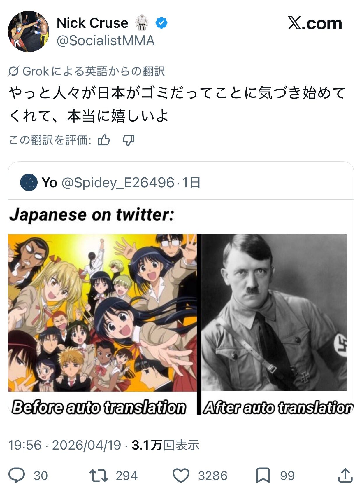 特に今はネトウヨの所為と、海賊版乞食外国人による日本叩きが凄まじく左の俺でもはぁ?と思う時があるわ