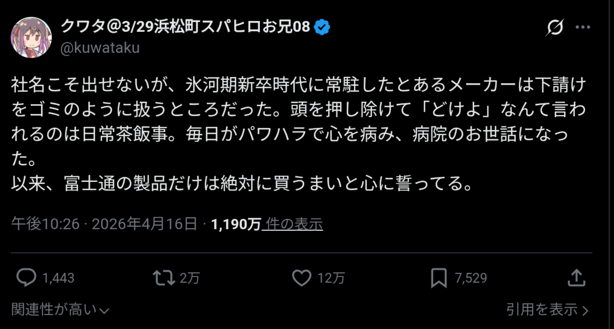 親会社から出向してきた奴らの天竜人みたいな振る舞い忘れられん言うてたな