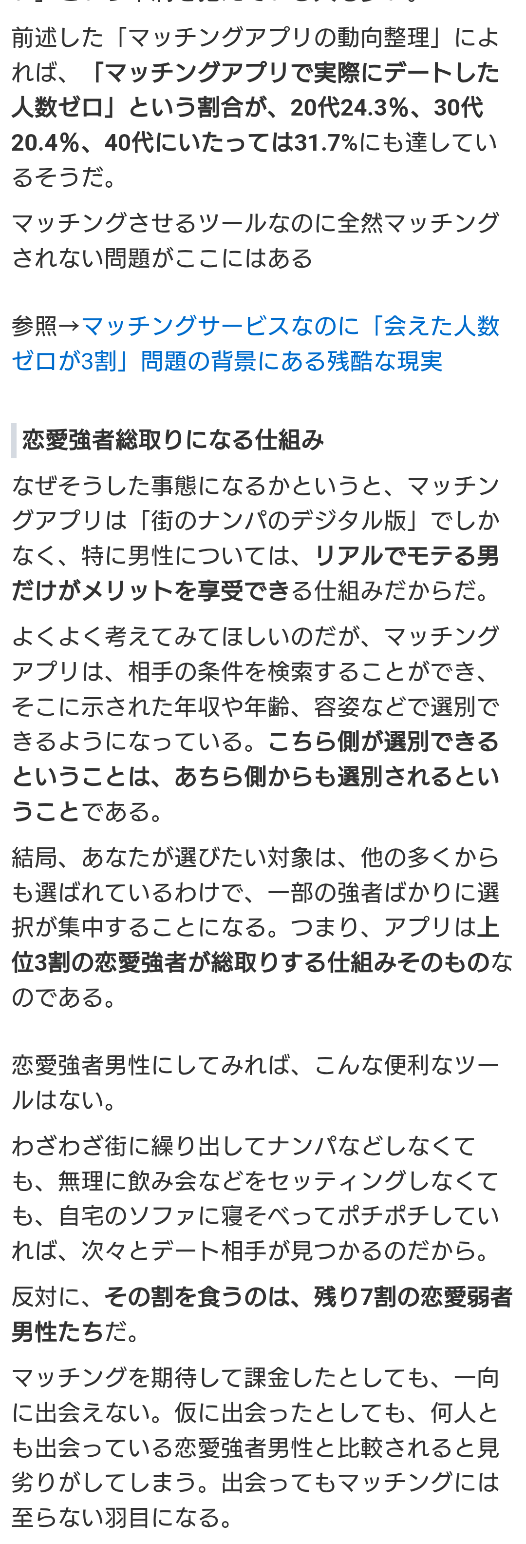 マチアプで結婚する層は元々友人紹介や社内婚をしてた人らがスライドしただけってのは見たな