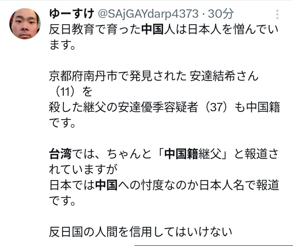ただ、台湾メディア「犯人は中国籍」を信じてしまうほど、