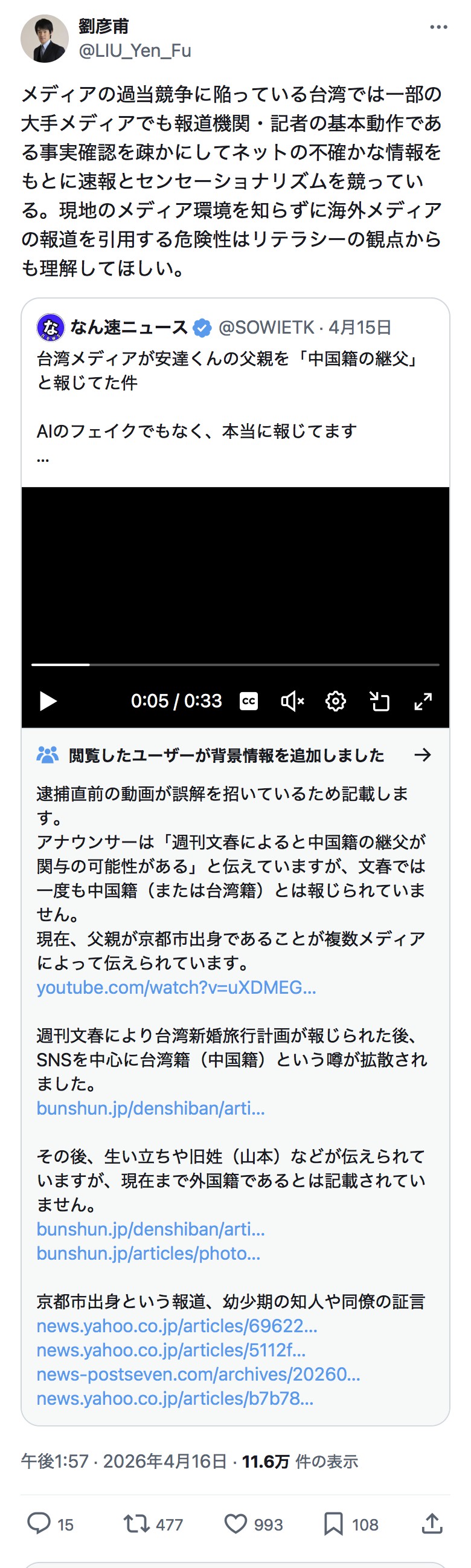 xのデマを台湾の報道が信じてそれをソースにxでさらにデマが広がるバカサイクル