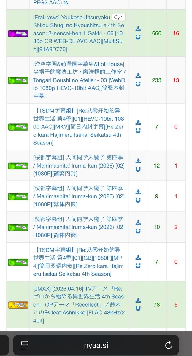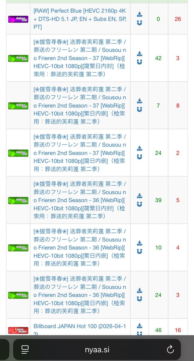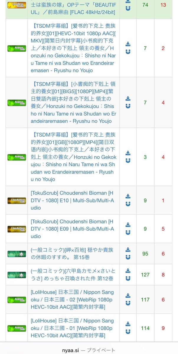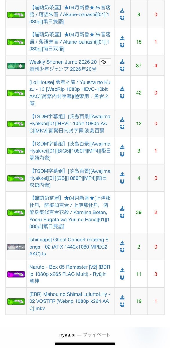 中国はbaiduで一次配布しとるからわざわざnyaa使う理由ないんよな
