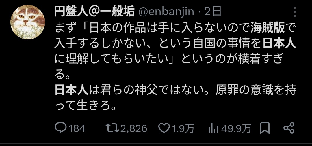 外国人の海賊版擁護を見て「ここまで遵法精神を持ち合わせていないのか」と驚愕してる