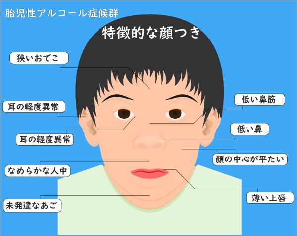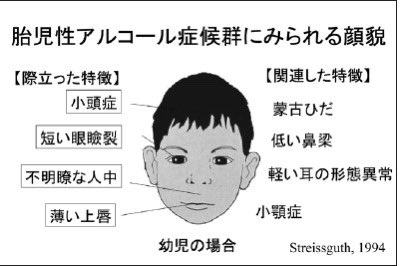 胎児性アルコール症候群は妊娠超初期の微量なアルコールでも顔の形成に影響が出るとちゃんとした報告があるんやで