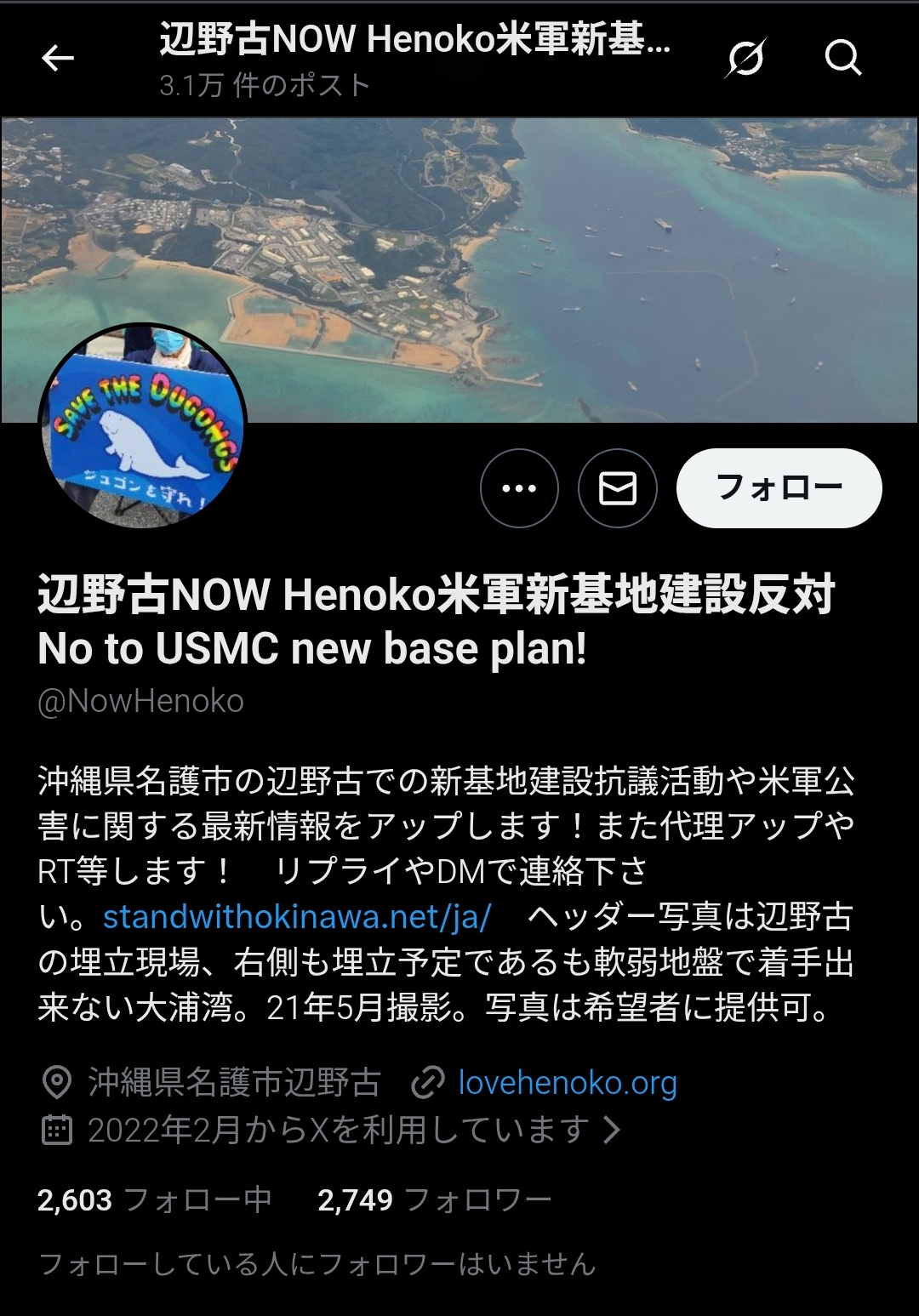 — 辺野古NOW Henoko米軍新基地建設反対 No to USMC new base plan! (@NowHenoko) April 22, 2026
