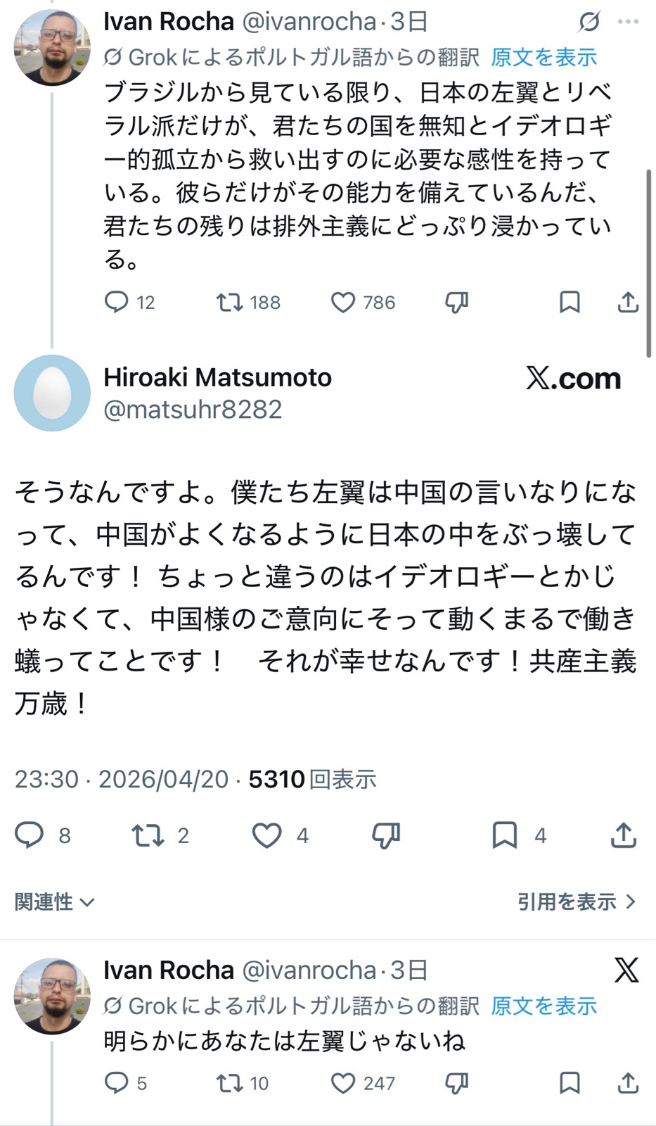 このスレみたいにバカな日本の左翼に持ち上げて貰えるから気持ちよくてやめられないだろそりゃ