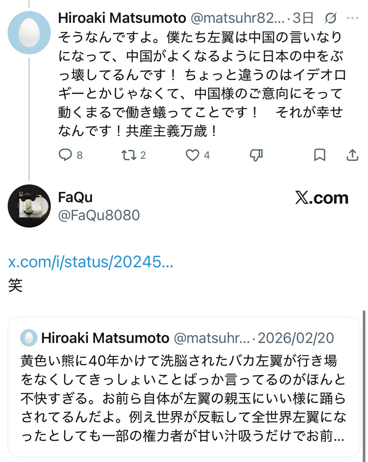 これで論客気取ってるんだからワロスは。…