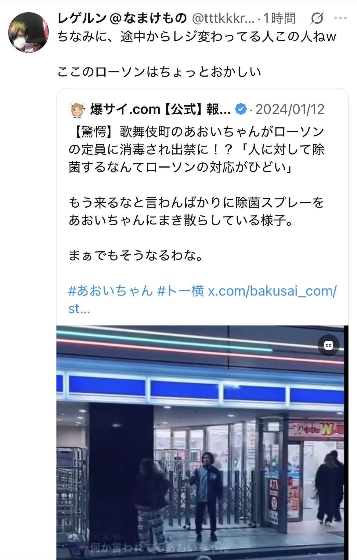 いやあおいちゃんはこの目の前の道に住んでて臭いし、しょっちゅうニヤニヤしながら万引きする常習犯やからこの対応で間違ってへんぞ