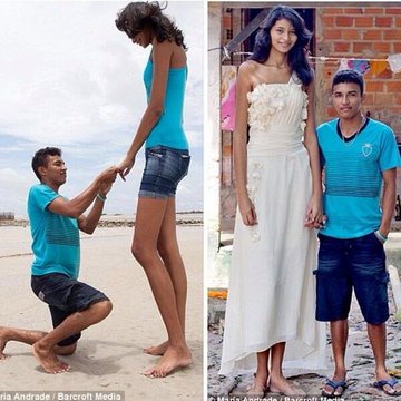 Elisany da Cruz Silva, an 18-year-old from Brazil, stands at an incredible 6'8" and is set to tie the knot with her fiancé Francinaldo da Silva Carvalho, who's 5'4". Despite their 14-inch height difference, the couple is head over… pic.twitter.com/62M4pdhWm4
