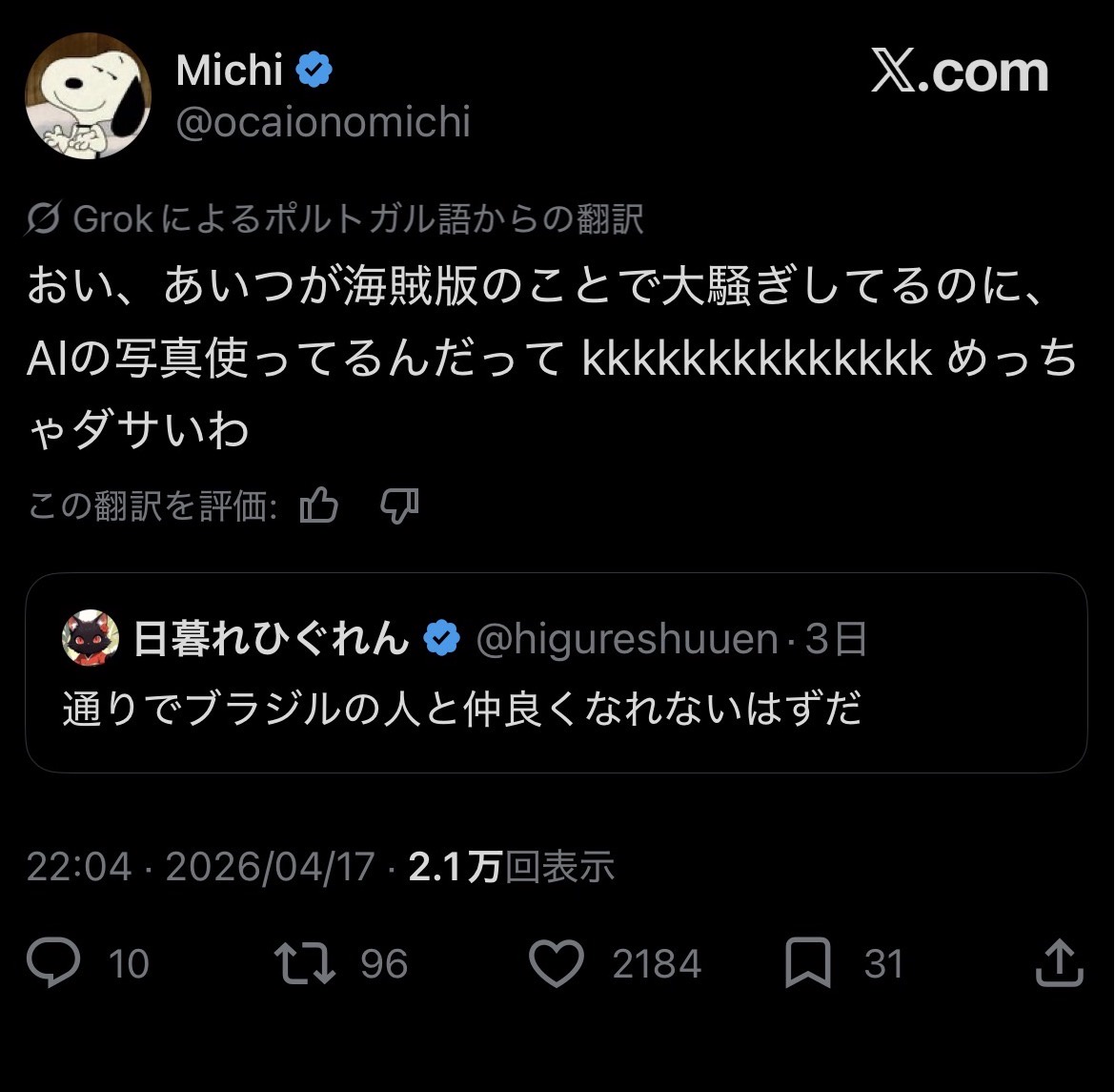 自分が割れやってるから他の奴もやってるだろと決めつけて日本は割れを批判する資格ないとか