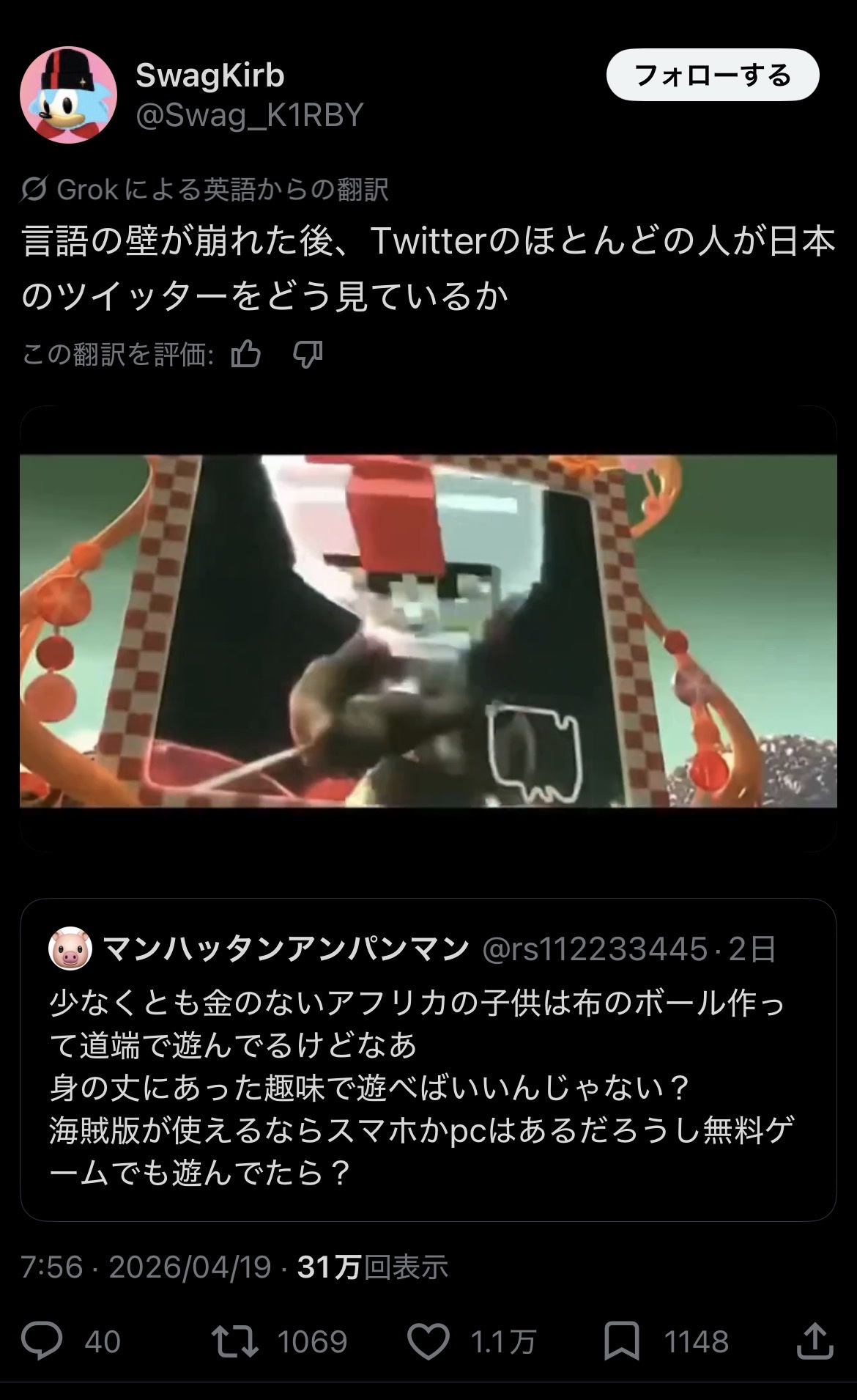 ぶっちゃけ割れや海賊版よりよっぽど健全やと思うんやが議論を放棄した日本人が外人は理解出来ないものだとして差別しまくったのが発端やと認識しとる