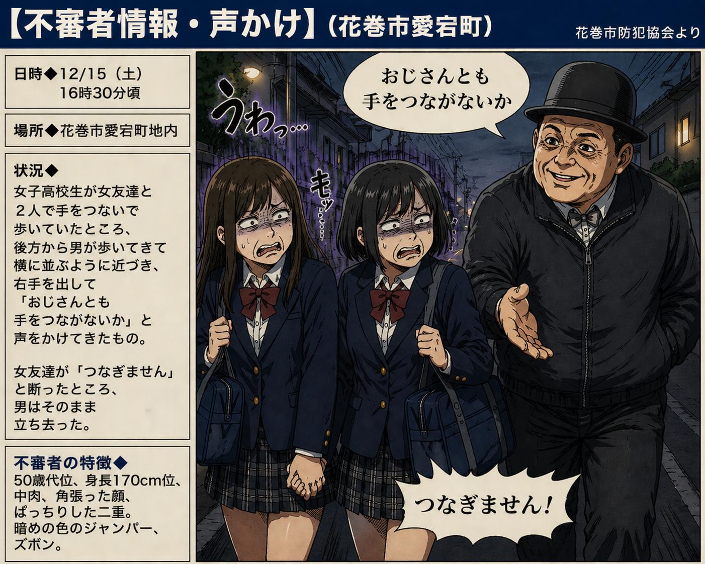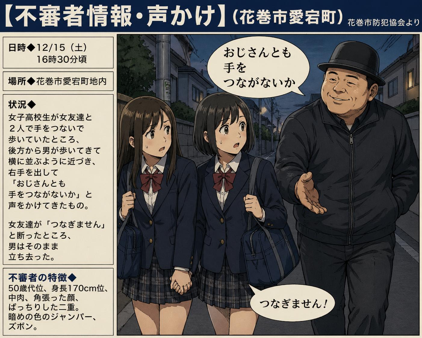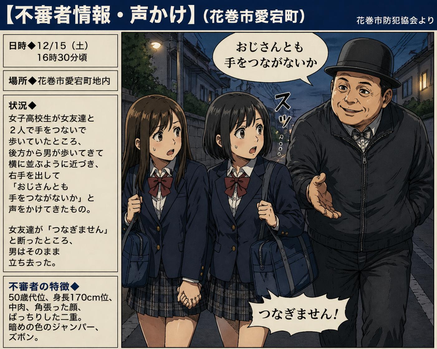 【不審者情報・声かけ】(花巻市愛宕町)