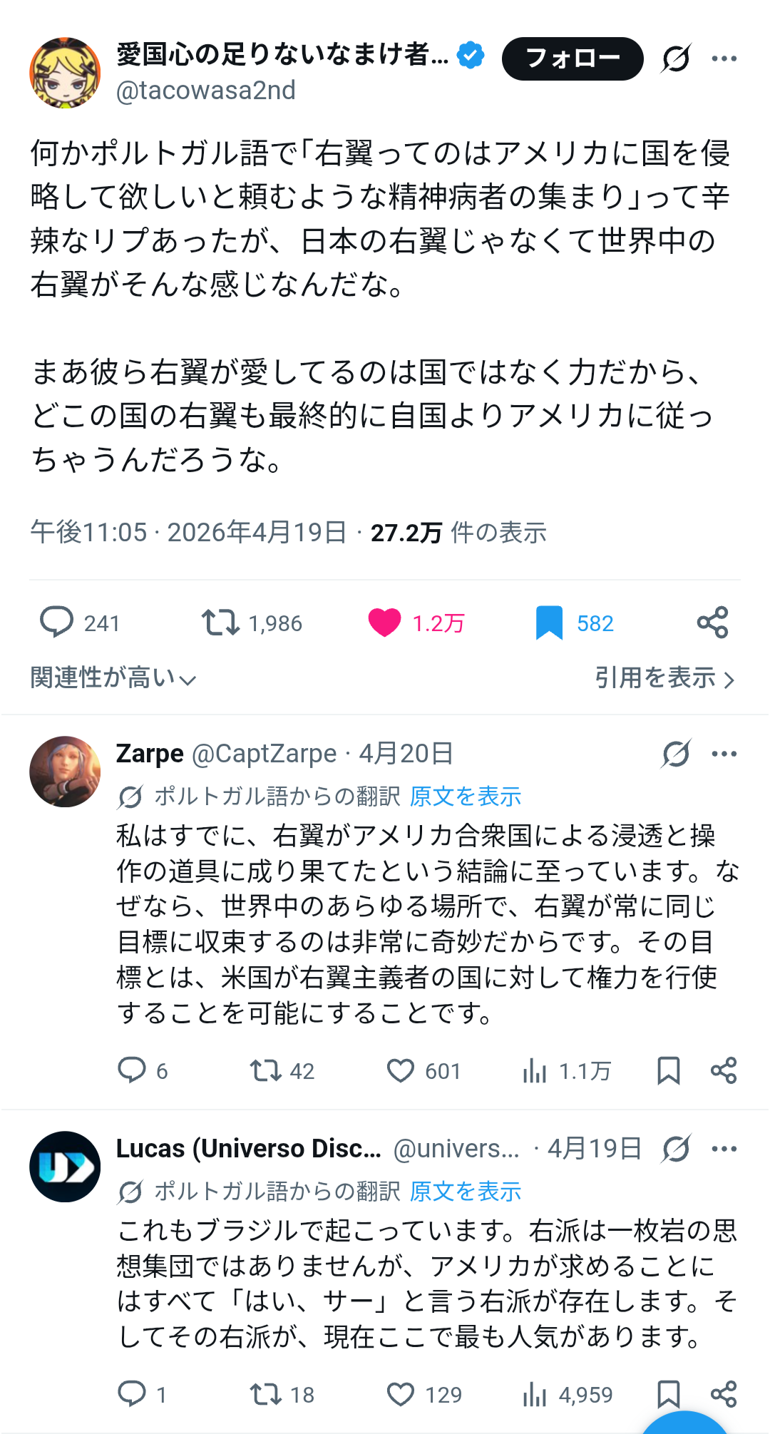 このダブルシンクがアメリカの工作の賜物としたらあまりに成功しすぎとるわな