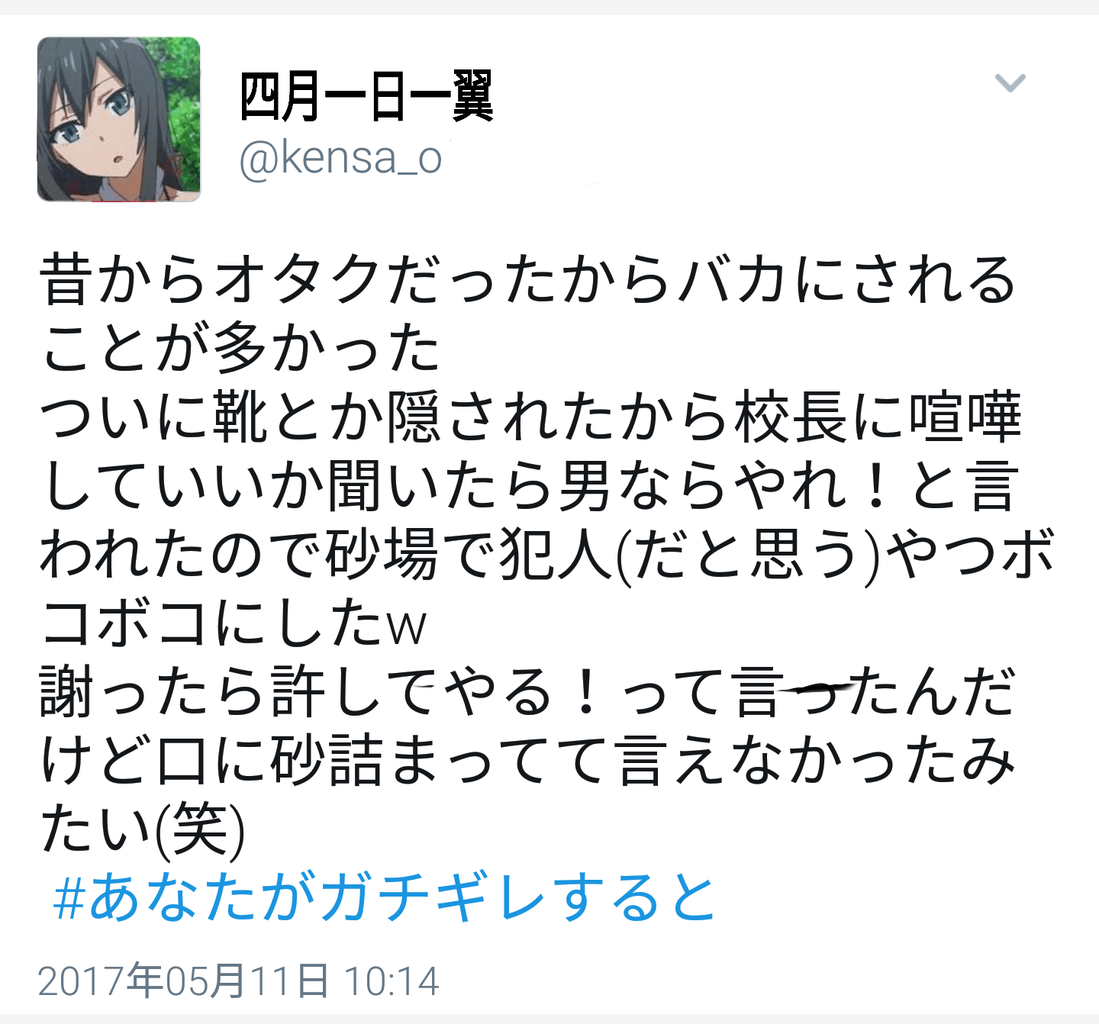 「日本人には『舐められたら殺す』という文化がある」みたいな最近流行ってるあれ、見るたびに共感性羞恥で死にそうになる。そんな文化ねえよ。漫画に描かれてることを本気にする馬鹿があまりに多すぎる。
