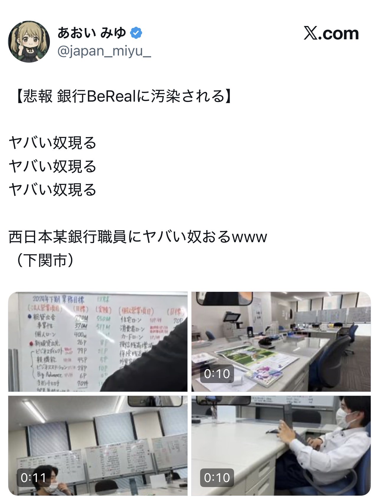 【衝撃】Ζ世代銀行員さん、ガチでBeRealで社内情報を開示してしまうwwwwwww