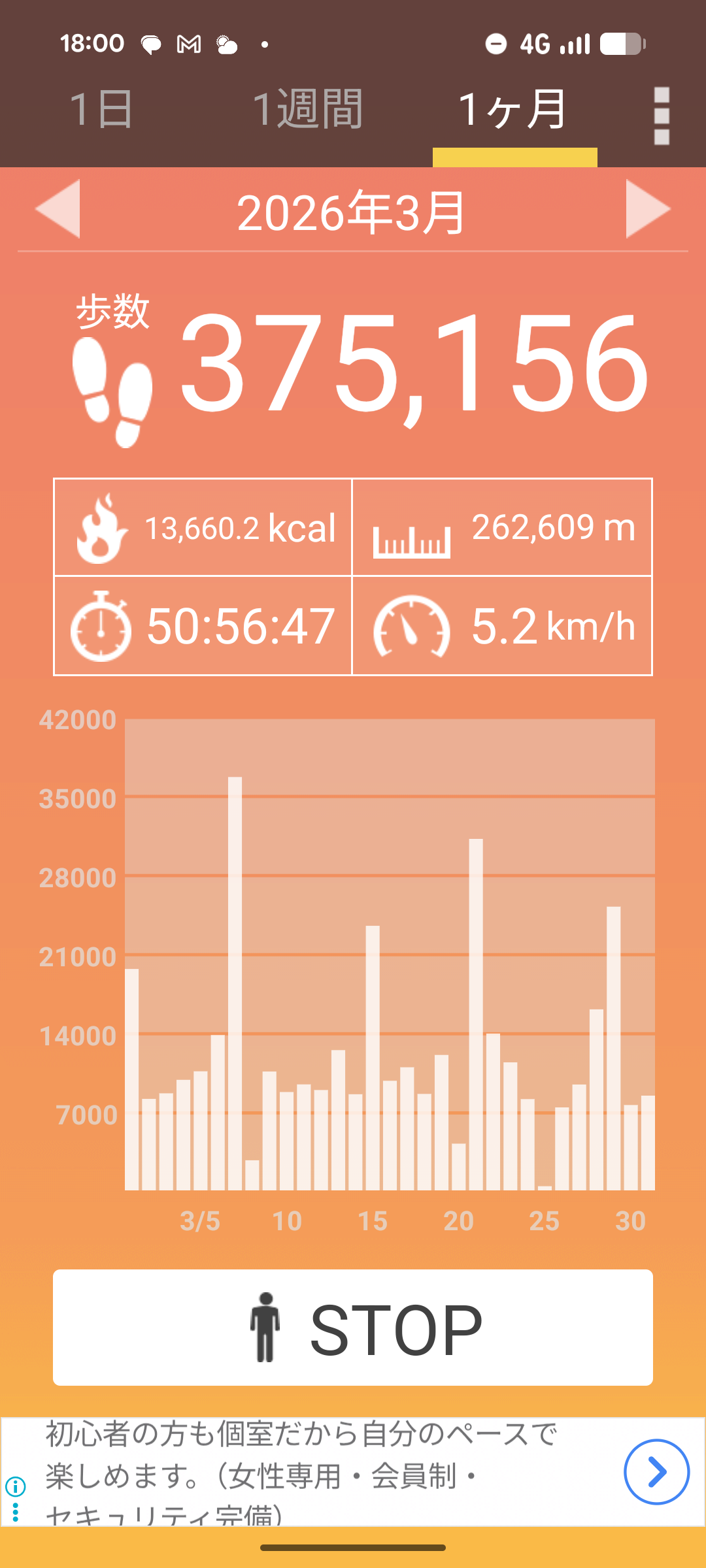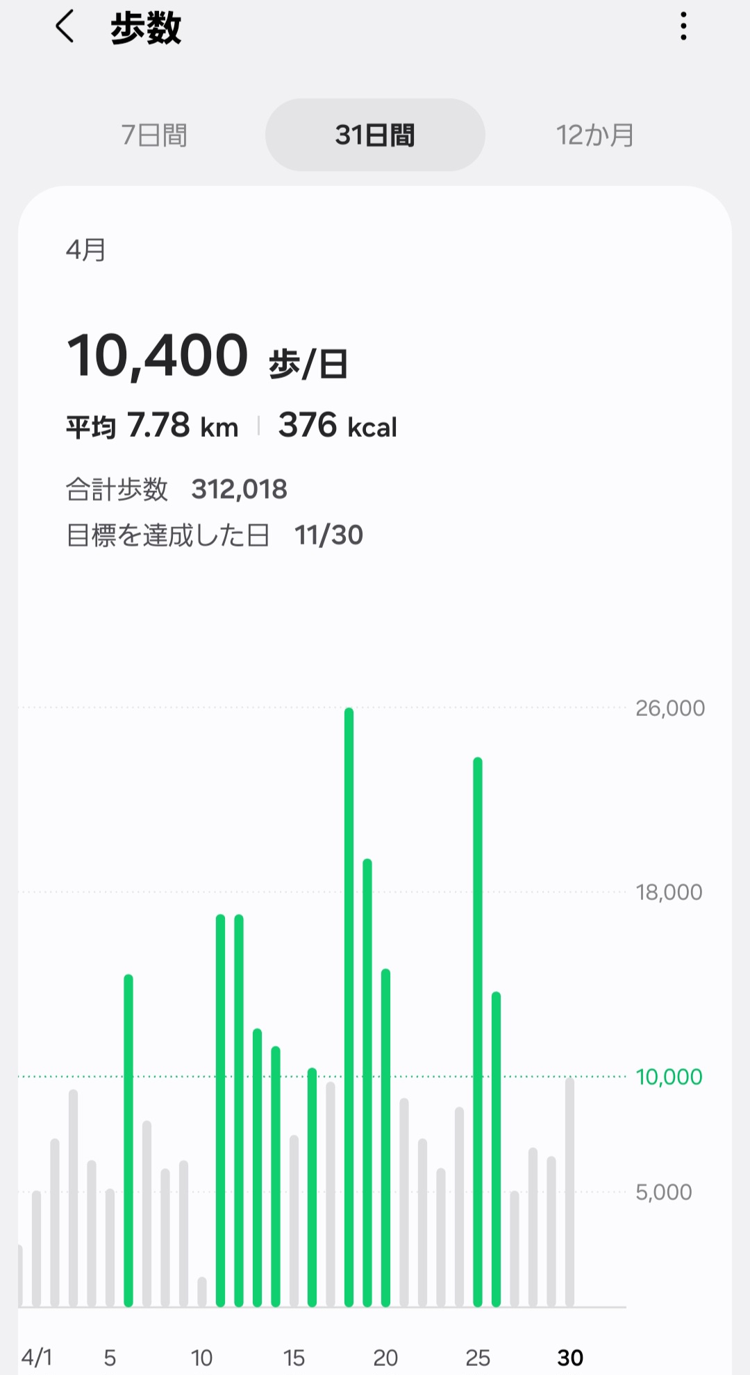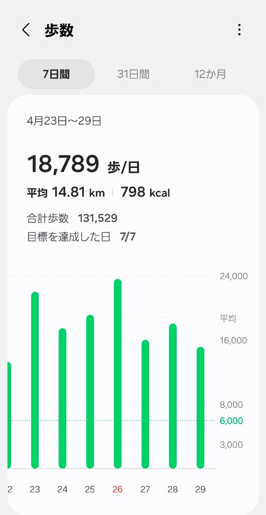 1日3万歩超えはすげーわ