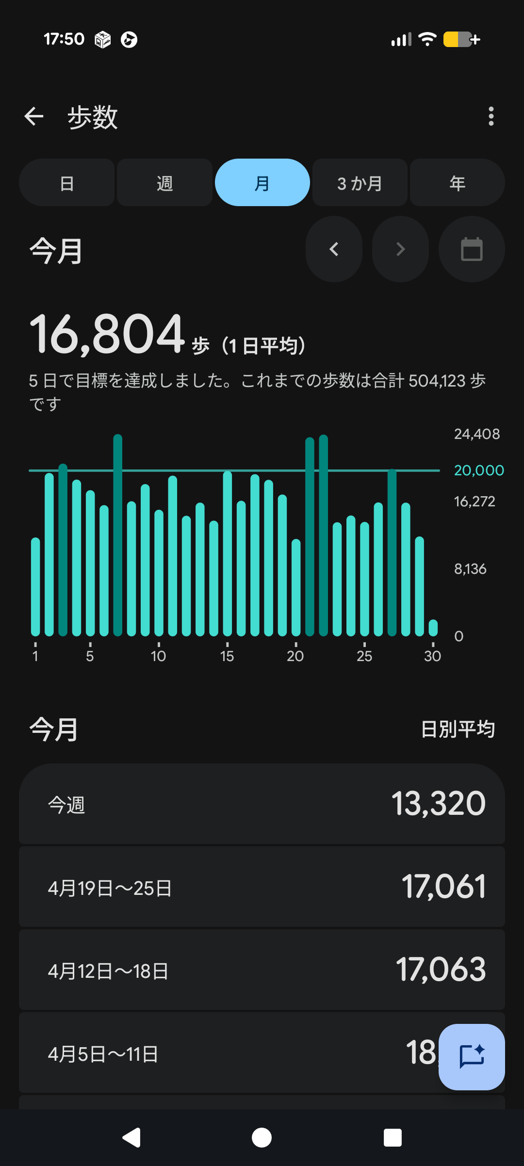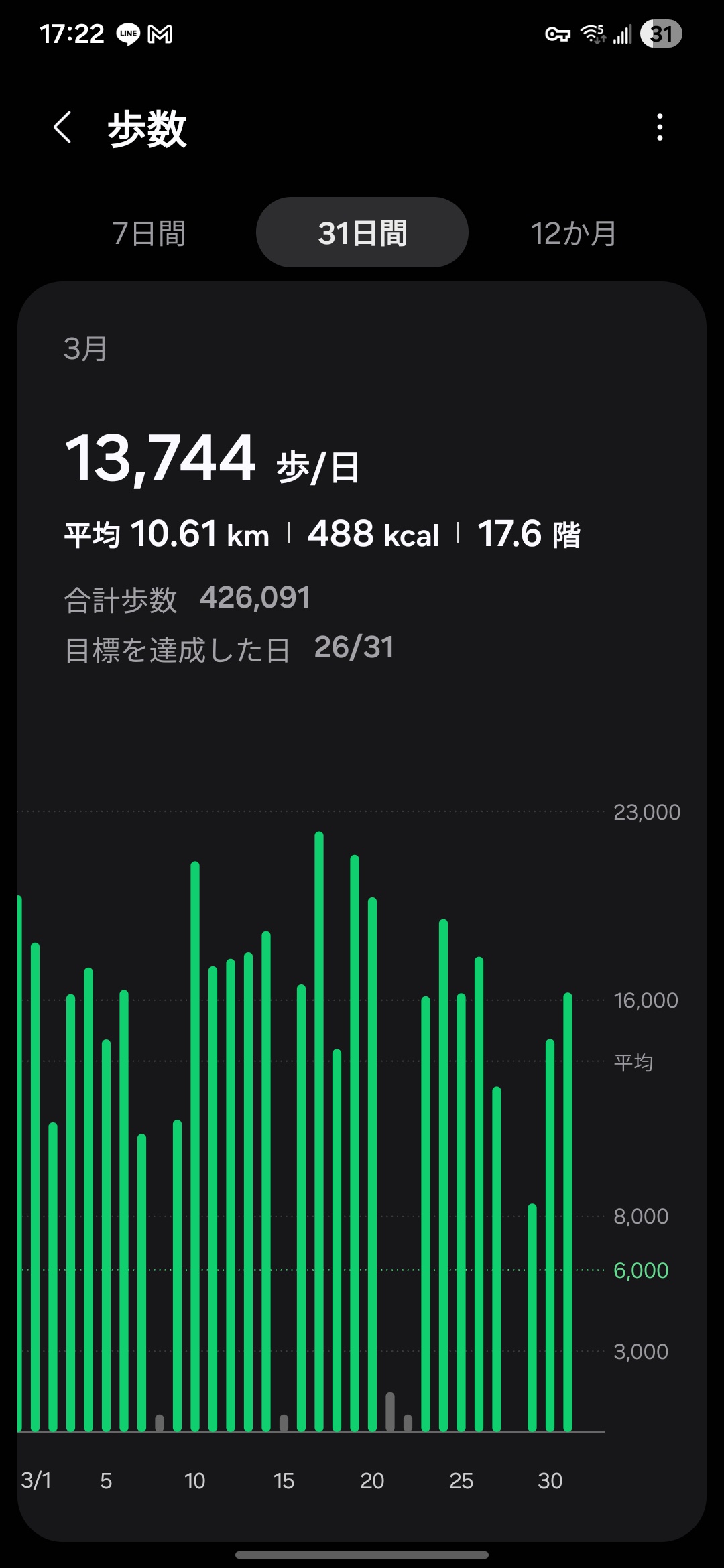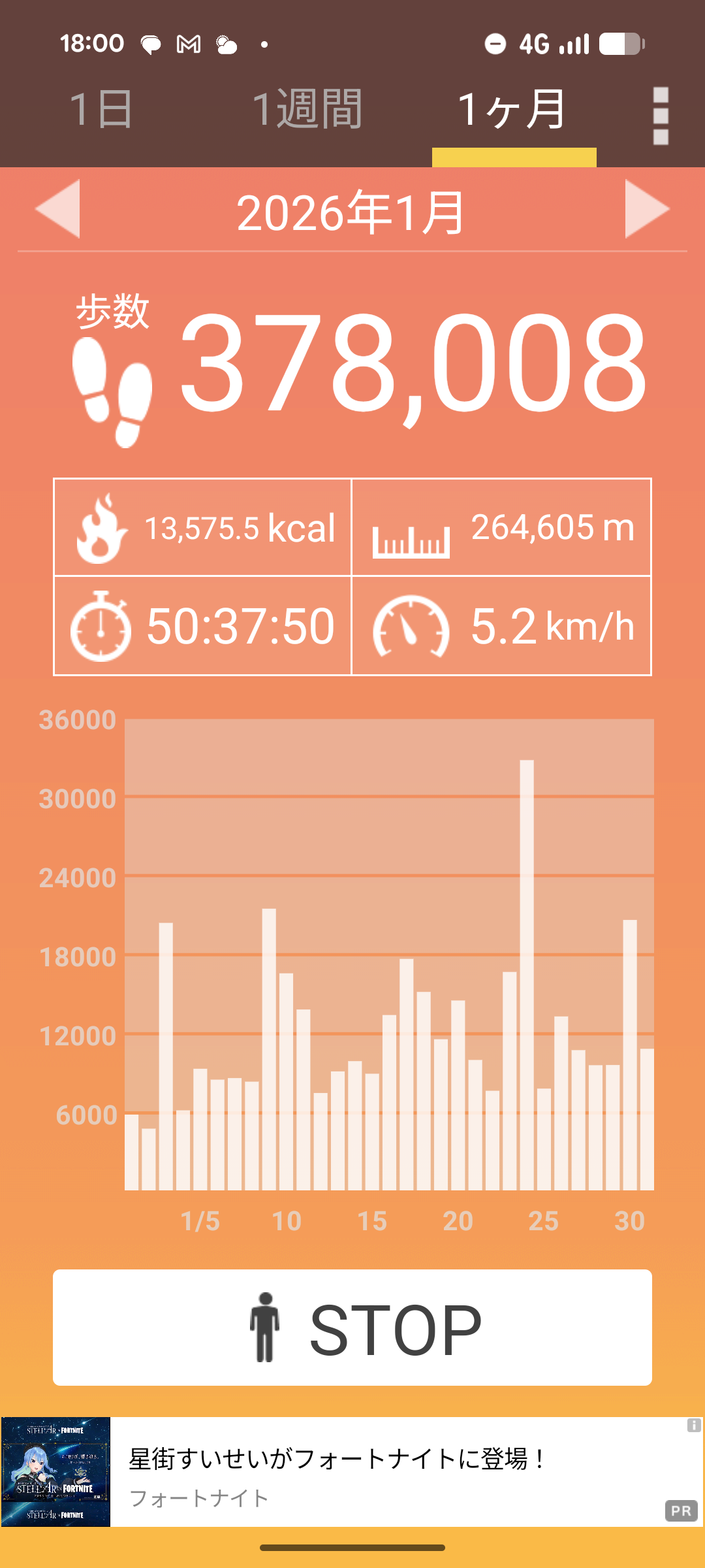 1日3万歩超えはすげーわ
