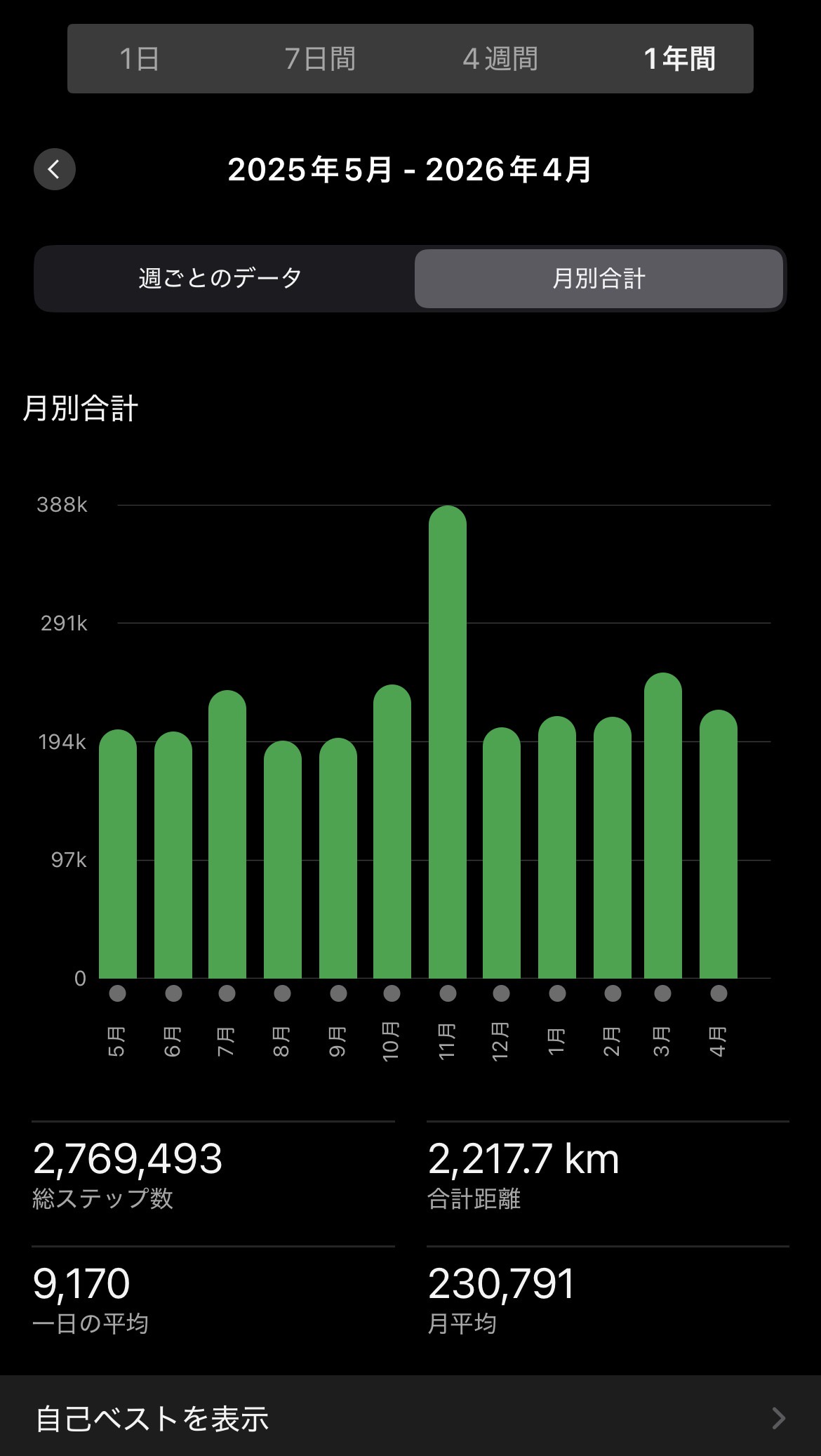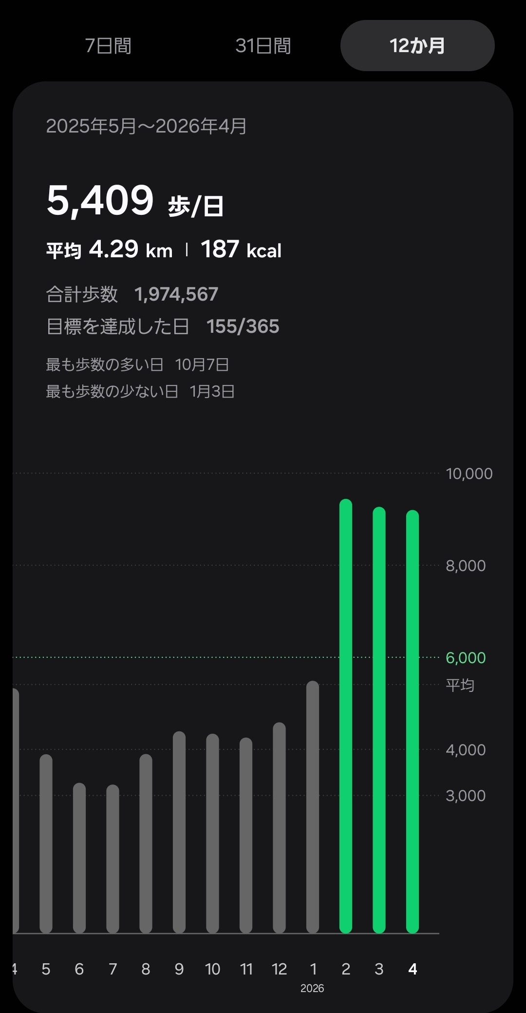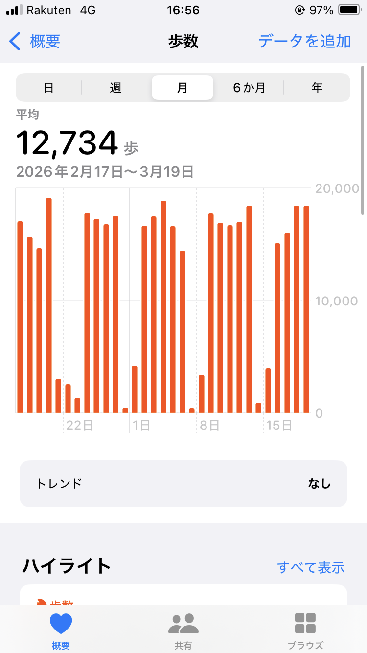 土日のどっちかは家に籠る系のワイでここ1年は9000歩くらいやな