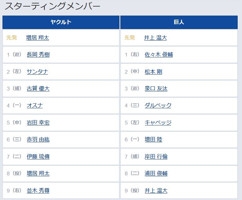 8 (投) 増居 翔太 8 (二) 浦田 俊輔