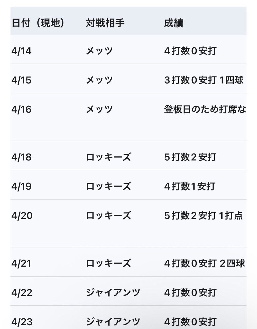 大谷翔平(32) .271(85-23) 5本 11打点 1盗塁 得点圏.158 OPS.890←率直な感想