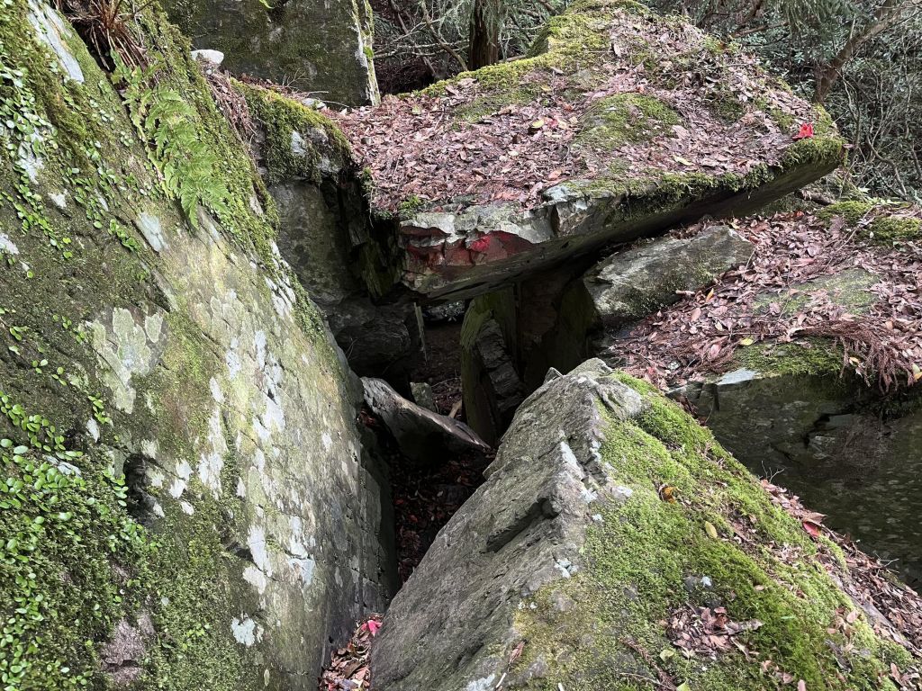 1人がようやく潜れるくらいの岩の隙間を潜って降りる