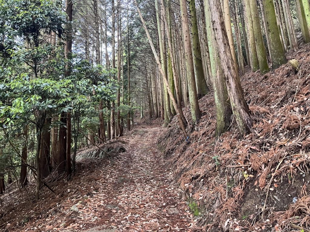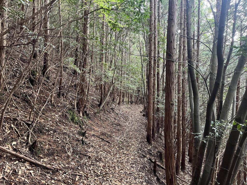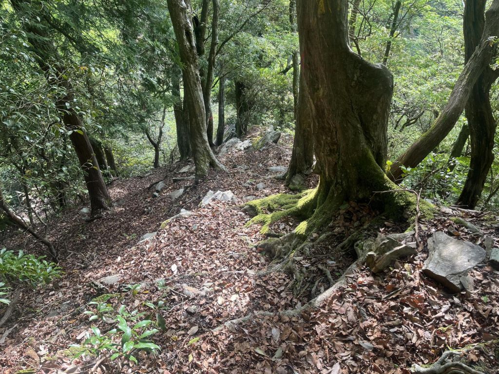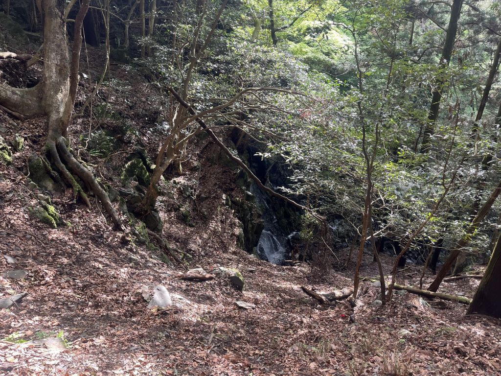 初めは谷に向かってどんどん下っていくんだが落ち葉が堆積していてとにかく滑る