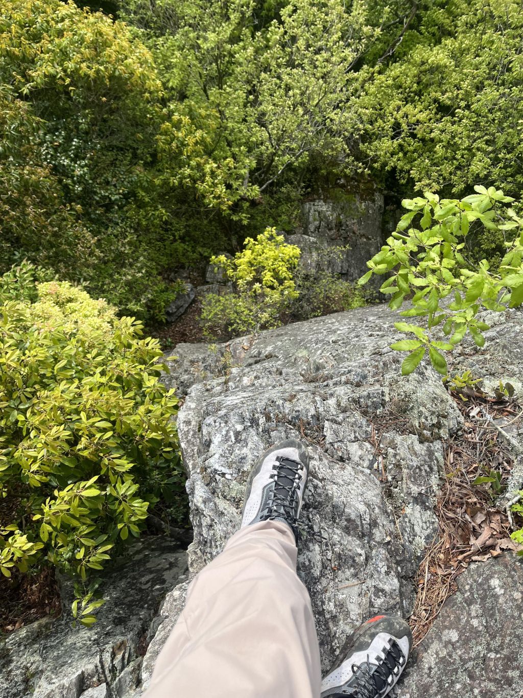 途中まではなんて事はないが、途中で岩の前面に回り込んで登る箇所がある