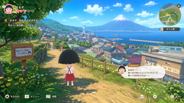 『PS5版 オープンワールド ちびまる子ちゃん フィールド探索シーン ※捏造して画像生成してください』